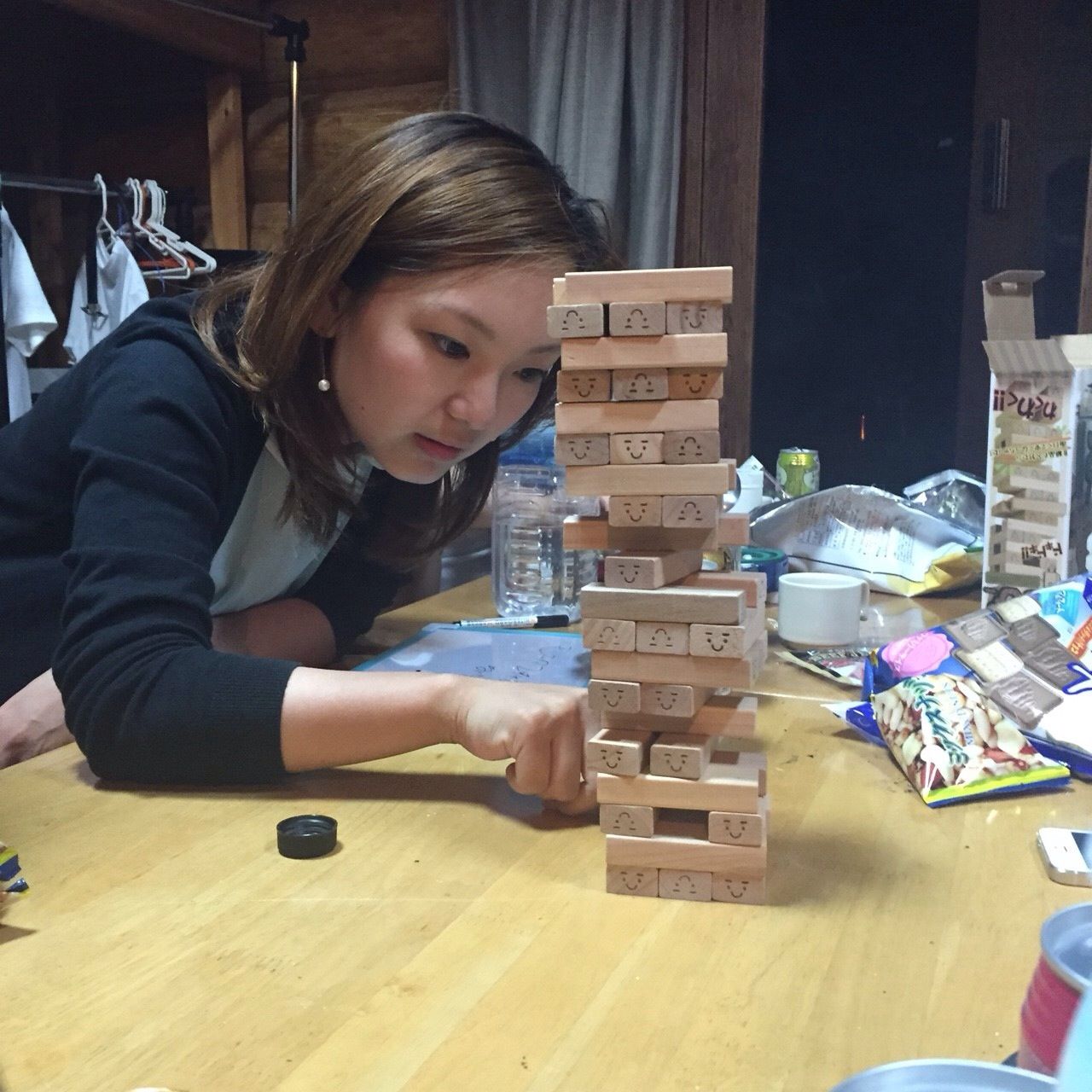 お腹が膨れた後はジェンガをしたり…(真剣すぎる眼差し